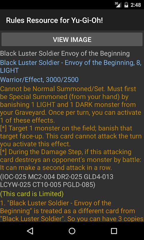این برنامه شما فراهم می کند با یک راه برای مشاهده متن کارت حل مشکل ترین به روز شده، تمام کونامی احکام و احکام قبلا منتشر شده بر روی کارت های قدیمی منتشر شده است. هنگامی که شما دانلود یک پایگاه داده سازگار، اطلاعات را بر روی تلفن شما ذخیره می شود و در حالی که قابل مشاهده آنلاین بنابراین شما اتصال به اینترنت فعال نیاز ندارد.