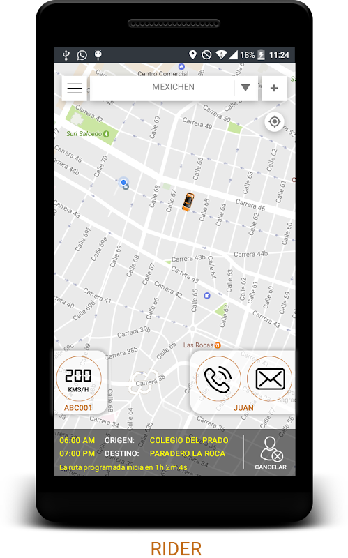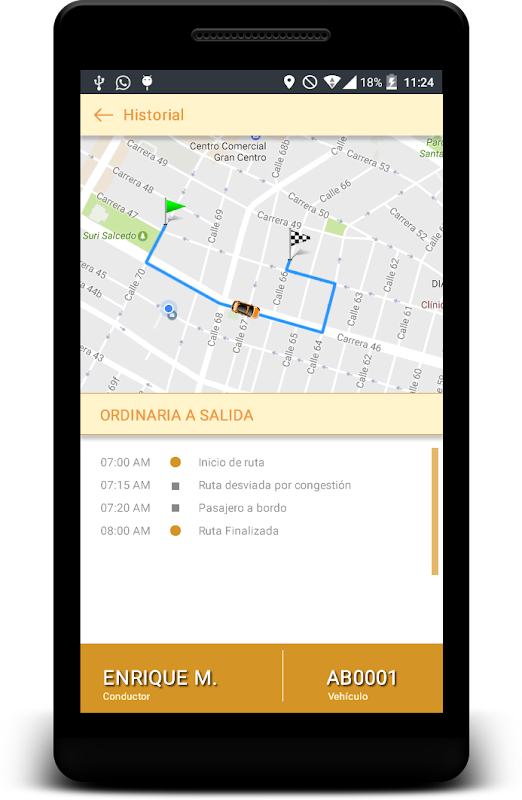 - Recibir alertas relacionadas con el estado de la ruta (retrasos, cercanía, falla mecánica, accidente).