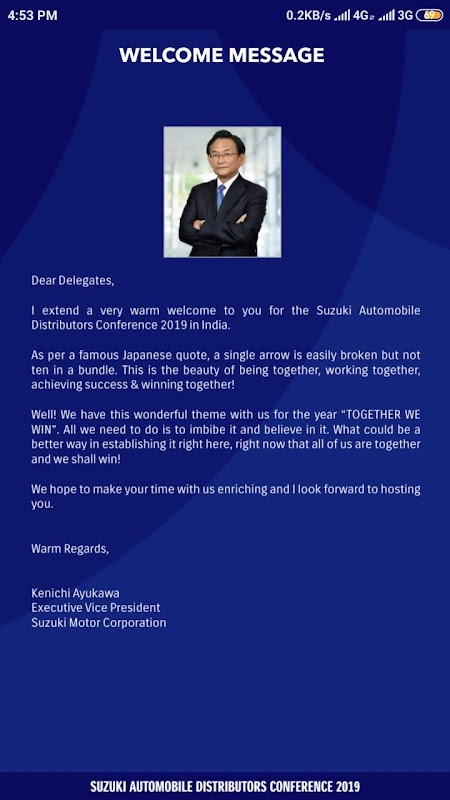 Suzuki invites its distributors from across the world to India for its Suzuki Automobile Distributors Conference. This app lets the distributors connect with the organizers and have all the event related information on their fingertips.