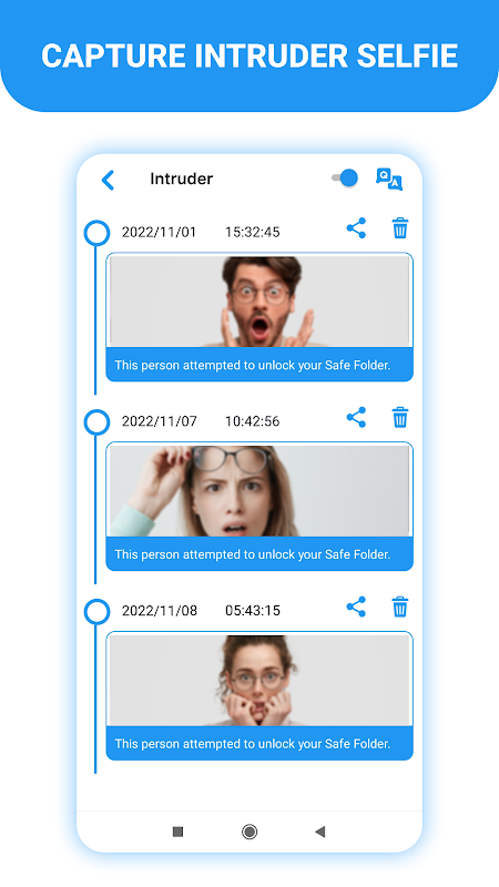 To prevent hide Safe folder being uninstalled, Safe folder need Device Administrator Permission and it never use any other Device Administrator permission except uninstall prevention