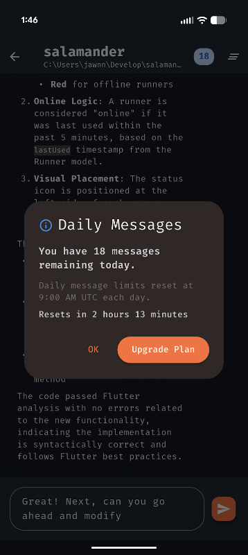 با قدرت هوش مصنوعی، می توانید همیشه در رایانه خود حضور داشته باشید. حتی زمانی که از صفحه کلید دور هستید، سازنده بمانید. با پشتیبانی Anthropic Claude CLI، می توانید تلفن خود را به گونه ای به رایانه خود متصل کنید که گردش کار شما را افزایش داده و خروجی شما را بهینه کند. یک runner ایجاد کنید، یک فهرست را انتخاب کنید و یک مکالمه را با هوش مصنوعی خود شروع کنید. در حین انجام کار، میتوانید بیرون باشید و کاری را که دوست دارید انجام دهید، و هنگامی که هوش مصنوعی کار خود را انجام داد، یک اعلان فشاری برای شما ارسال میکند که برای کار بعدی آماده است. حتی زمانی که شما AFK هستید، هوش مصنوعی شما در رایانه شما آماده است تا اجرا شود.