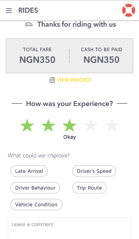 - After the ride, you can rate your driver and provide feedback to help us improve SamFort experience. You’ll also get an invoice receipt by email for fare breakdown.