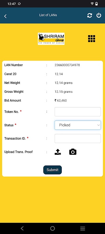 درخواست خریداران طلا برای انتخاب بسته های طلا از SAMIL. خریداران بسته های طلا را از فروشنده در شعبه انتخاب می کنند و رسید را برای مرجع بارگذاری می کنند.