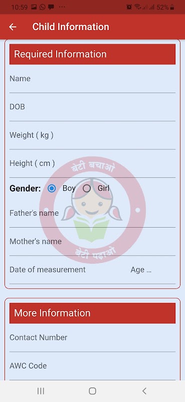 این برنامه با هدف کمک به کاربران Anganwadi ، افسران پروژه رشد کودک و سایر مجریان سطح زمینه برای ثبت ، محاسبه ، تجزیه و تحلیل و / یا سازماندهی داده های مربوط به سو mal تغذیه کودکان و شاخص توده بدن است. این اثر همچنین بخشی از ابتکارات دولت در رابطه با "بتی باچائو ، بتی پدائو یوجانا" است.