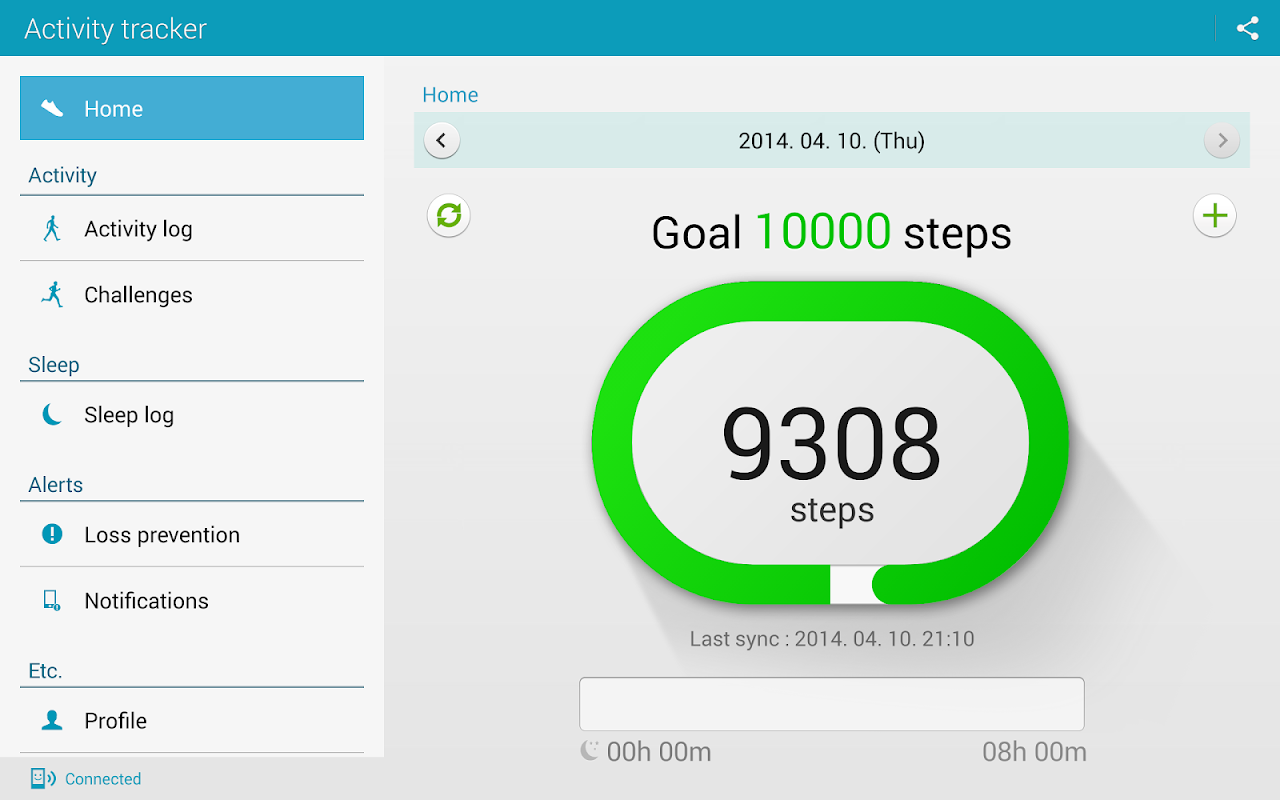 This application shows your daily activity and sleep records measured by Samsung Activity Tracker.