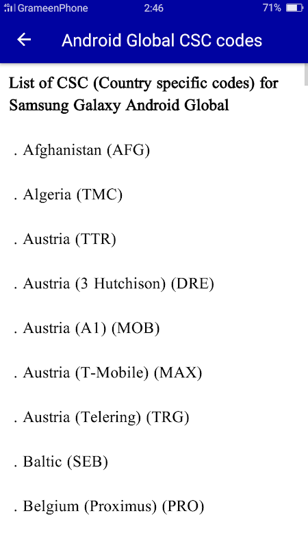 اطلاعات Samsung CSC Code Guide APK