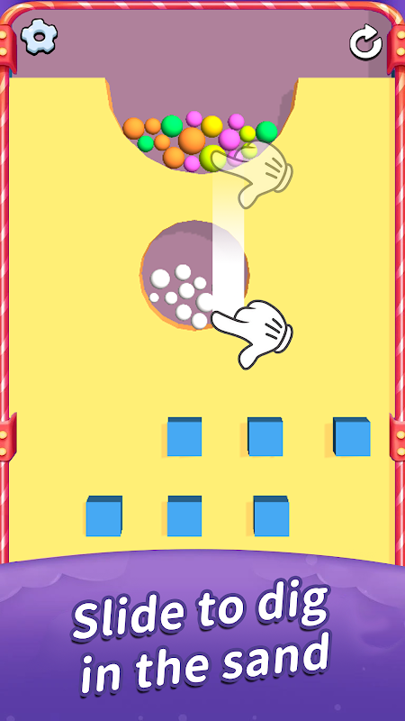 این یک بازی پازل آرامش بخش است که برای کنترل ریزش گلوله شنی صفحه نمایش را بلغزانید