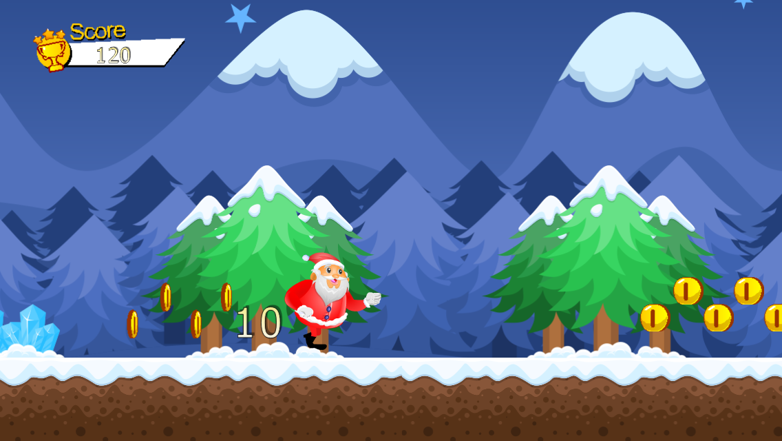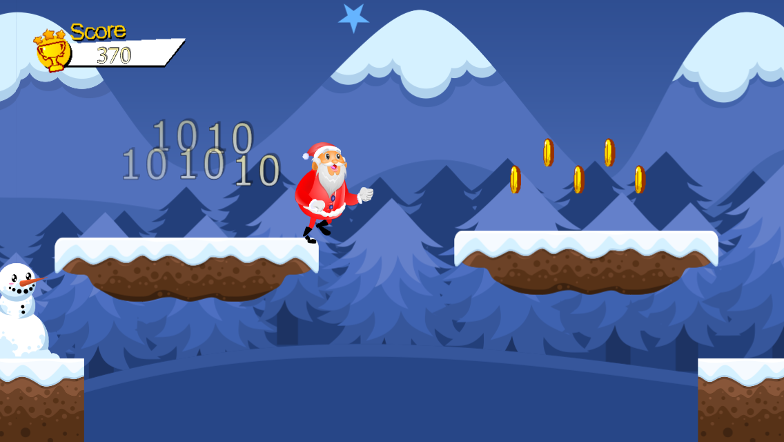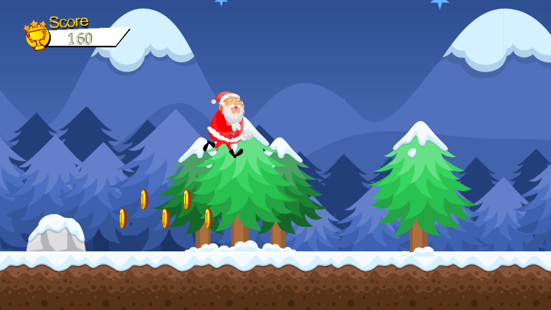 اجرای و پرش سریع و قوی به بابا نوئل در کریسمس. فرار از موانع و جمع آوری تمام سکه ها. جمع آوری تمام سکه و سعی کنید به بالاترین نمره.