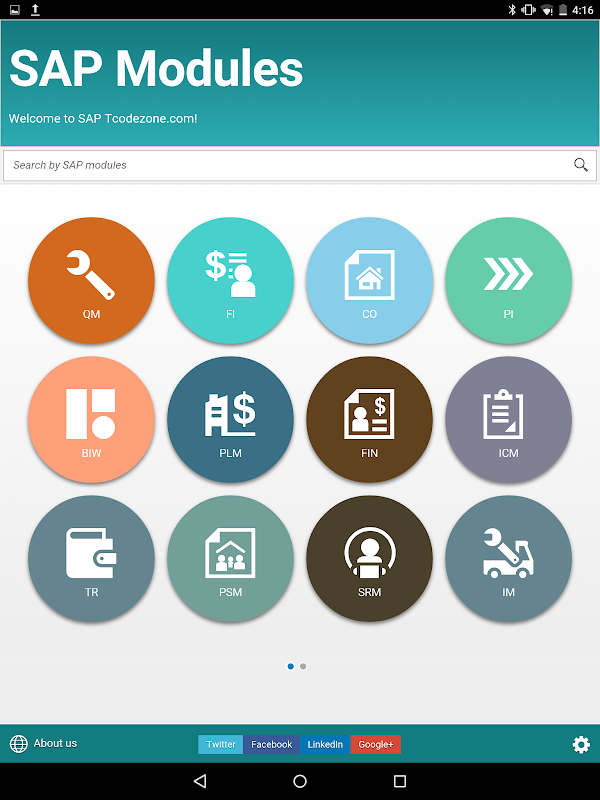 This app currently has the SAP Tcode from the following modules: