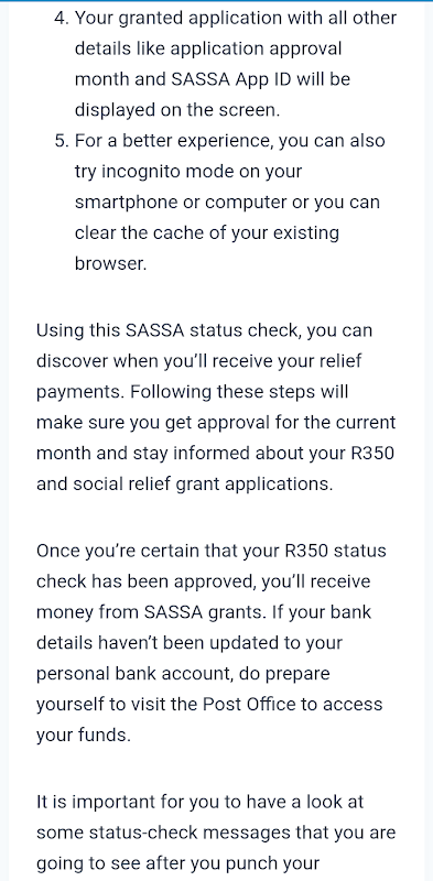 در اینجا در Sassacheckapp، ما نقش مهمی را که مزایای تامین اجتماعی در کاهش فقر و افزایش رفاه جوامع به حاشیه رانده شده ایفا میکند، تصدیق میکنیم. هم کمکهای SRD و هم کمکهای SASSA مشروط به آزمایش هزینهها، مشروط به سطح درآمد خانوار شما هستند.