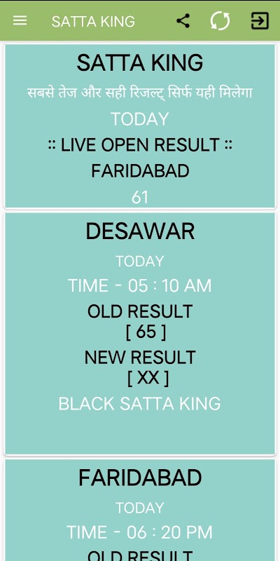 نتایج زنده ساتا کینگ و بهروزرسانیهای تک جودی را در یک مکان دریافت کنید. بهروزرسانیهای روزانه بازی از جمله بازیهای دساور، فریدآباد، غازیآباد و گالی را دریافت کنید.