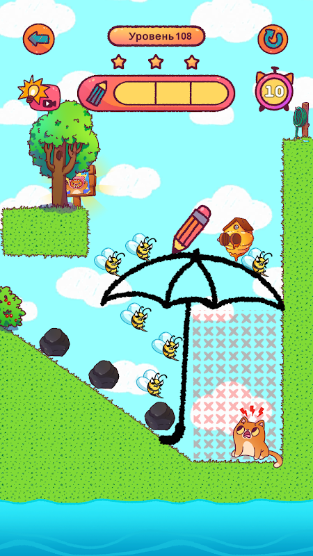 با انگشت خود یک خط بکشید و گربه سیمبو را از دست زنبورهای عصبانی نجات دهید!