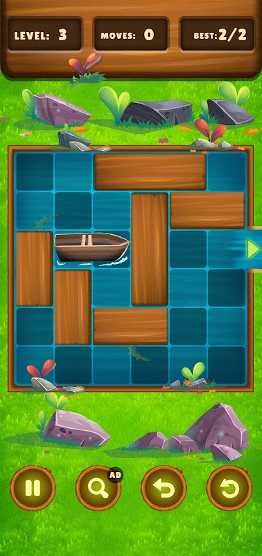 هدف شما این است که مسیری را برای رسیدن قایق به خروجی باز کنید. هر سطح چالش جدیدی را ارائه میکند، که از شما میخواهد بلوکها را به صورت افقی یا عمودی به صورت استراتژیک بلغزانید تا قایق را آزاد کنید. برای کسب سه ستاره و دستیابی به تاج فوق العاده معتبر، هر مرحله را بدون استفاده از نکات تکمیل کنید! از انیمیشن های روان، صداهای آرامش بخش و سیستم رتبه بندی سه ستاره لذت ببرید.🛶