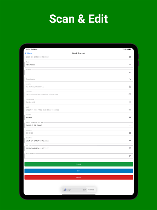اسکن و پر کردن: دوربین آیفون خود را به سمت یک کد نشانه بگیرید—داده های شما فوراً در صفحه گسترده ظاهر می شوند.