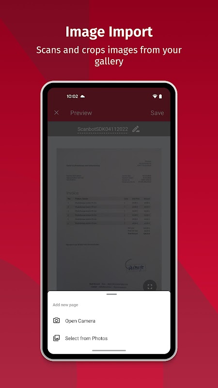 با قابلیتهای ضبط و برش خودکار ما، تنها کاری که کاربران شما باید انجام دهند این است که دستگاه خود را روی یک سند نگه دارند تا اسکن کاملی برای باطن شما ایجاد کنند. Scanbot SDK بقیه کارها را انجام میدهد - تصاویر تار و بد برشخورده با پسزمینه نگرانکننده به گذشته تبدیل میشوند.