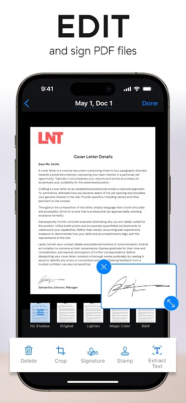 نیاز به امضای سریع سند دارید؟ امضا یا مهر خود را مستقیماً در برنامه رسم، اسکن یا وارد کنید. برش، بهبود و فیلتر هوشمند برای اسکنهای واضح