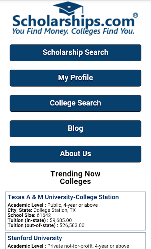 Search Faster, Find more Scholarships and Research Top Colleges with the latest version of the Scholarships.com mobile app!