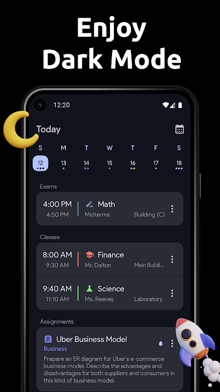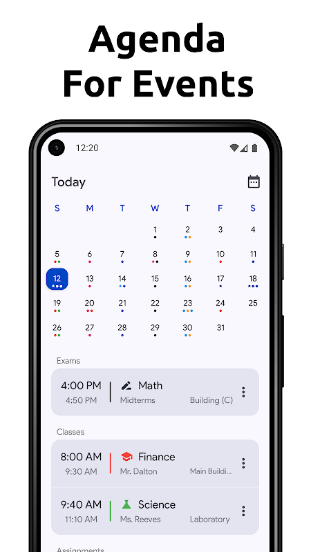 به راحتی می توانید کلاس ها ، تکالیف و امتحانات خود را ایجاد و مدیریت کنید. همه در دستور کار شما نشان داده می شود که در آن می توانید برنامه روزانه خود را پیدا کنید. از آنجا می توانید رویدادهای خود را مدیریت کنید یا در صورت بروز حوادث اضطراری یک کلاس واحد را لغو کنید.