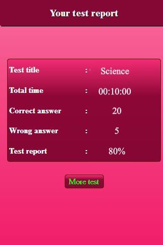This App contains 10,000 questions. This Science test is the best way to improve your Science knowledge. This Science test app is perfect for lower, intermediate and upper levels.