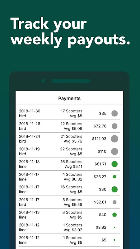 Import your payments from all of the companies you charge for - Bird, Lime, Voi and more coming soon. See how you are doing over time and how you compare to other chargers.