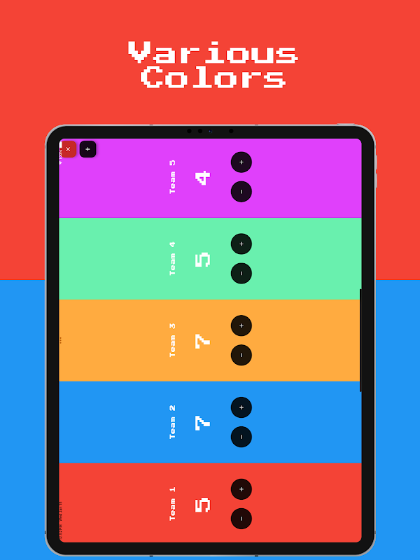 طراحی شده برای ناوبری آسان، Scoreboard: Score Keeper به شما اجازه می دهد تا هر تعداد تیم را که نیاز دارید اضافه کنید، هر کدام با یک طرح رنگی متمایز الهام گرفته از بازی. این امر ردیابی پیشرفت چند بازیکن یا تیم را ساده میکند، چه در حال سازماندهی یک تورنمنت بازی مهمانی، یک جلسه چیزهای بی اهمیت خانوادگی، یا یک مسابقه کارتی یک به یک. اندازه فونت قابل تنظیم و چیدمان پاسخگو تضمین می کند که تابلوی امتیاز شما همیشه با صفحه دستگاه شما مطابقت دارد، از گردهمایی های معمولی تا مسابقات رسمی باشگاه.
