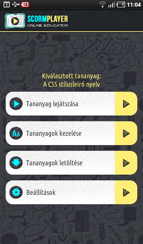 Egy egyszerűen, könnyen használható alkalmazást, ami képes a nemzetközi SCORM szabványnak megfelelő tananyagokat lejátszani. Bárhol és bármikor. Akár internet kapcsolat nélkül is.