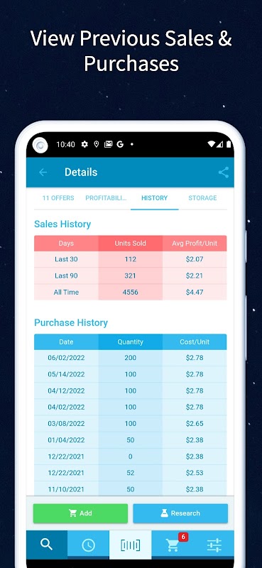 - سابقه اقلام شخصی: تاریخچه فروش و خرید InventoryLab خود را برای هر مورد مشاهده کنید