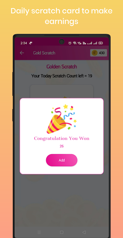 Scratch and Win App Is Designed For User's Entertainment Purpose. Clients Can Get Some Virtual Points In This App Only By Scratching Some Cards.