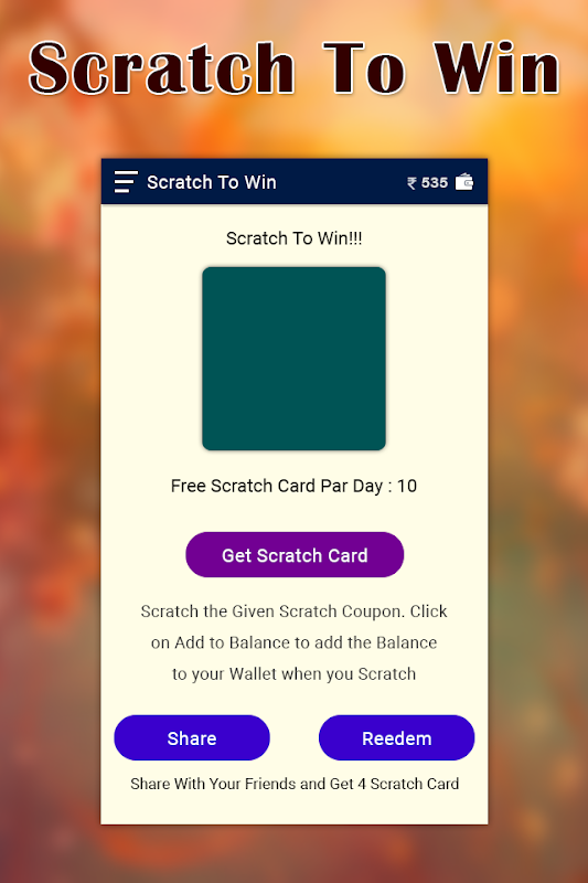 Scratch To Win It is a simple and easy scratch application through with you can play at the same time earn some coin.