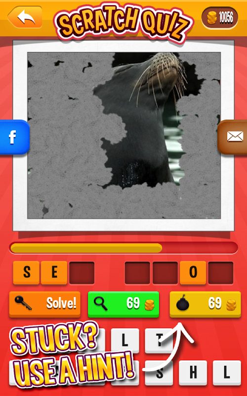 Feeling stuck? Hint tools make it easier to discover the answer . . . remove or reveal letters in the answer, or use the key to fill it in completely! When you complete enough levels you are awarded hints for free. You can also buy more hints and scratches in the game.