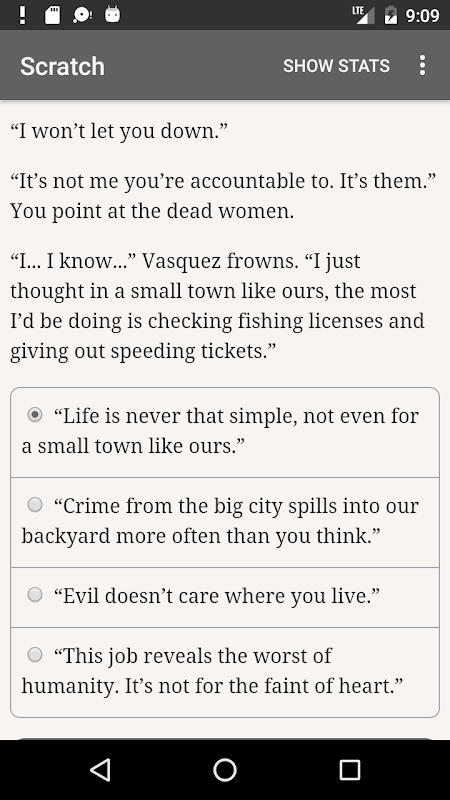 "خراش" 165،000 کلمات رمز و راز قتل تعاملی تعامل با ابر Buchholz است، که در آن انتخاب شما کنترل داستان. این کاملا مبتنی بر متن است - بدون گرافیک و جلوه های صوتی - و توسط قدرت وسیع و غیرقابل توقف قدرت تخیل شما تحریک می شود.