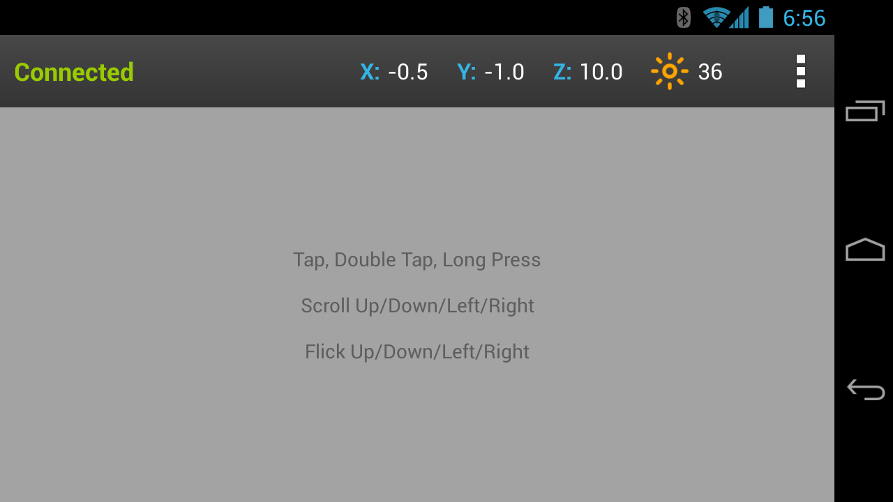 Scratcher Control lets you to use your Android powered device to control Scratch projects over WiFi. It allows you to easily incorporate button presses, finger gestures, accelerometer values, and light sensor values, and voice commands in your Scratch project.