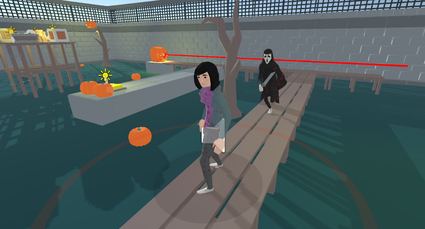 The ghost face game - will make you concentrate. You need to choose the right route and bypass all the traps to get to the evocation site. Scream ghostface are always on the alert and in order not to disturb them, you need to move quietly and imperceptibly. If he chases you, then you need to run as fast as you can, because it can easily kill you. To survive in this game you need to think logically. You need to choose the right route and bypass all the traps to get to the evocation site. Scream ghostface will not touch you only if you can find the right way out and outsmart him.