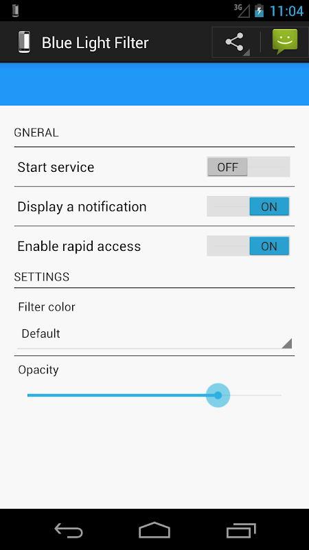This application reduces the blue light and helps you to avoid insomnia and eye strain caused by blue light. it also gives you a better control over your screen brightness