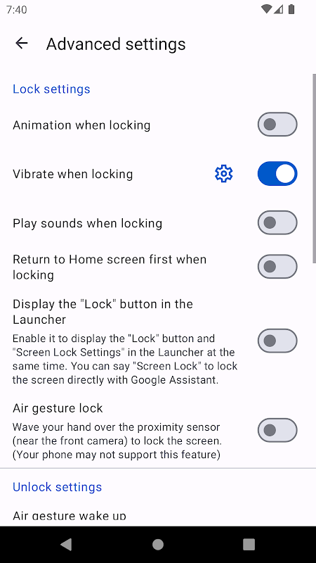 - Air gesture : Wave your hand over the proximity sensor (near the front camera) to wake up or lock screen