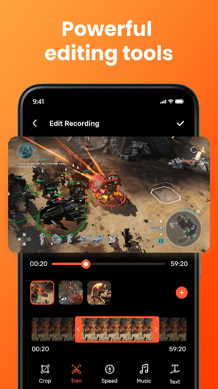 Trim, crop, or merge your recordings directly in-app—no need for external editing tools.