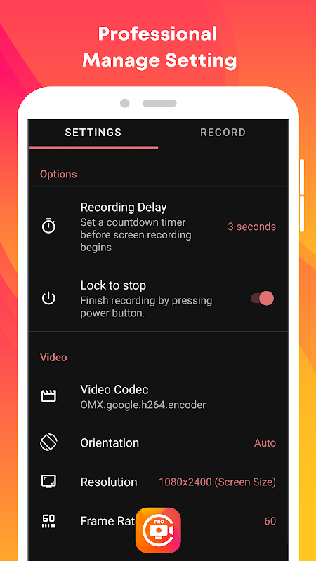 اما این همه چیز نیست - با Screen Recorder Pro، سایر ویژگی های کلیدی Screen Recorder عبارتند از: