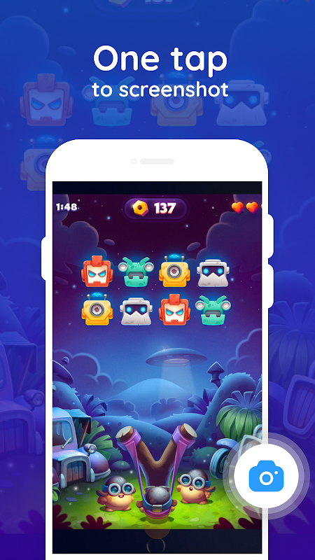 – One tap to capture your screen through a floating button.