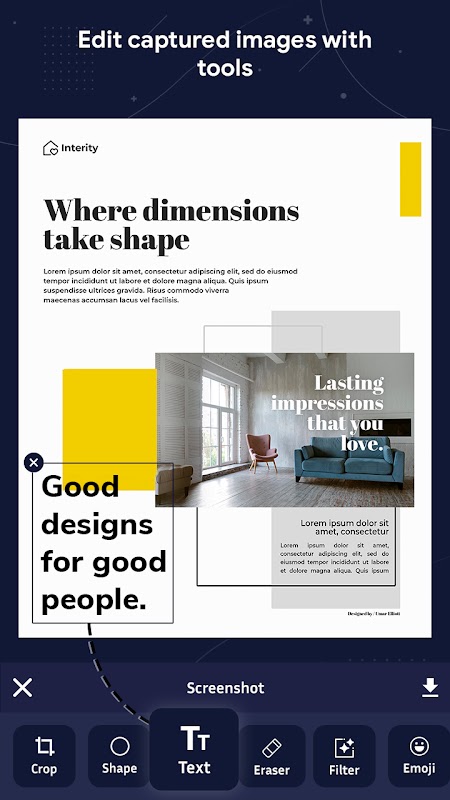 با دکمه شناور سریع از صفحه و صفحه وب عکس بگیرید. اسکرین شات ها را ویرایش و به اشتراک بگذارید.