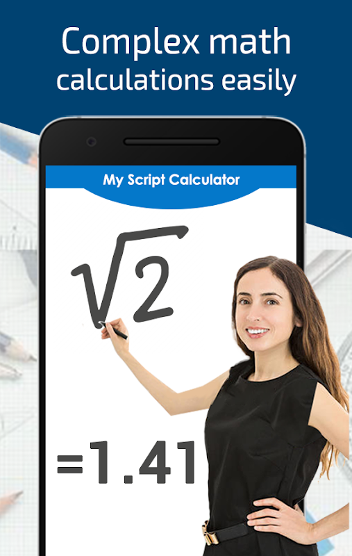 Script calculator is a digital paper calculator, where you don’t need to type but write by handwriting on the screen. With this complex calculator application, you can calculate any kind of scientific and simple mathematical equations. Write rational equations with handwriting and get instant result. This calculator turns your device into an interactive piece of paper where you can simply write a calculation and it gets you the result in real time. Develop it further with editing gestures or by adding new elements anywhere, reuse previous results with drag and drop and enjoy fast calculations.