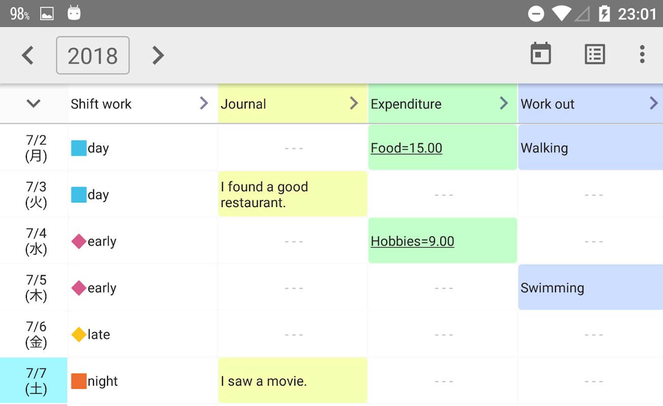 مدیریت زمان، مجله، پرونده های هزینه، مدیریت وزن، و غیره