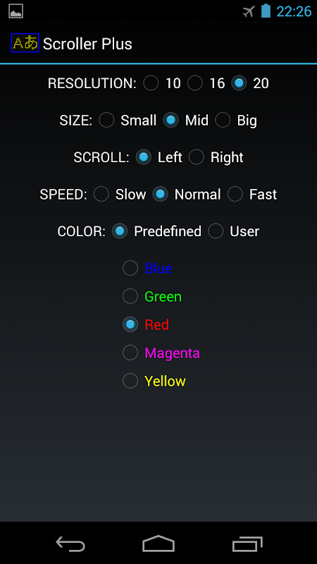 - Scrolling speed. You can change the scrolling speed sliding the finger on the screen while text is scrolling.