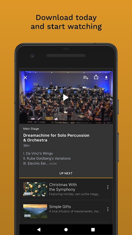 اجراهای زنده از صحنه Orpheum Theatre را به صورت HD تماشا کنید ، از کنسرتهای EXCLUSIVE SCSO Live ، ویژگی های پاداش پشت صحنه ، مصاحبه با Maestro ، نوازندگان SCSO و هنرمندان مهمان لذت ببرید و برخی از جذاب ترین و ابتکاری ترین کنسرت های امروز را شاهد باشید!