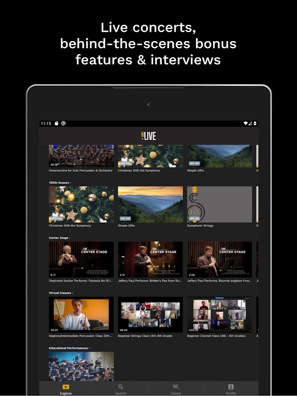 به کلیه جزئیات رپرتوار ، از جمله آهنگسازان ، مجریان و یادداشت های برنامه دسترسی پیدا کرده و آنها را مرور کنید. کلاسهای مسترکلاس و دروس گروهی به رهبری نوازنده و همچنین برنامه های آموزشی اضافی مناسب برای کل خانواده را تجربه کنید! با استفاده از کتابخانه دیجیتال ما ، شما قادر خواهید بود هر فصل ، هر زمان و هر زمان که بخواهید هر کنسرت را دوباره تماشا کنید و تماشا کنید!