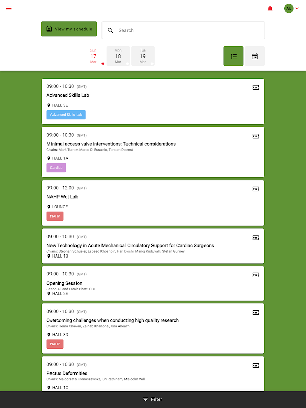 برنامه رسمی برای جلسه سالانه SCTS 2024SCTS 2024 برنامه رسمی برای نشست سالانه SCTS 2024 است که توسط SCTS سازماندهی شده است. .) . با جلساتی که بیشتر به آنها علاقه دارید دستور کار شخصی خود را ایجاد کنید. مکان و اطلاعات غرفه غرفه و حامی را مشاهده کنید، نقشه های طبقه محل برگزاری را مشاهده کنید، با سایر نمایندگان گپ بزنید و در نظرسنجی زنده و پرسش و پاسخ شرکت کنید.