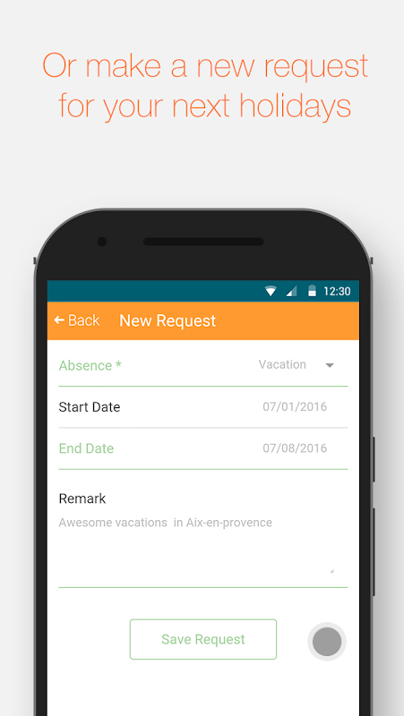 Manage your vacations request, see the current status and your history of absences all in one place, your phone