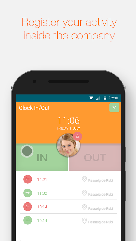 Allows the user to make clock registrations, giving the company reliable data about work hours and daymarkins