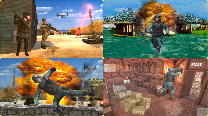 SWAT army superhero you have been called for ranger spy training missions and to execute deadly bomb blast missions in enemy base keeping pin drop silence otherwise enemy army alarm and spy cameras will see you for your ultimate arrest. It’s an impossible mission and as you are not any flying super hero so you have to complete army missions on the ground. US army mission by the best secret agent super hero spy in this stealth mission game is a real unforgettable excitement. So let the excitement of spy games and superhero game begins by downloading SECRET AGENT US ARMY Commando Mission. Monster superheroes accept this challenge.