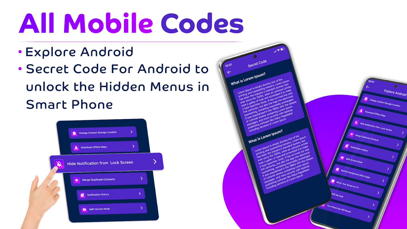 Unlock the full potential of your Android device with "All Secret Codes & Android Hidden Settings," your go-to app for discovering hidden menus and optimizing your Smartphone experience. Dive into a world of secret codes, mobile secret codes, and hidden settings that empower you to customize, enhance, and optimize your Android device.