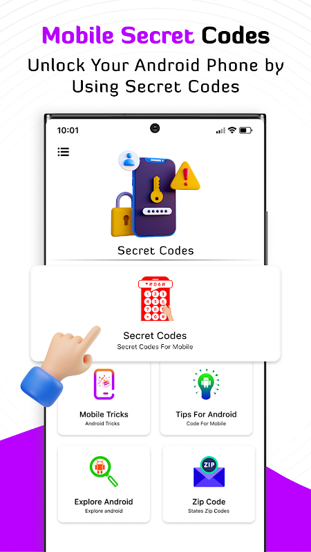 Secret Codes for Android app is secret tool app that let you find phone hidden menus with all secret codes. Become the master of android phone with all secret codes for android app. It helps you to know more about your android phone secret codes and Mobile Tips and tricks. Get all secret Tricks for phone and Android Tips you need.